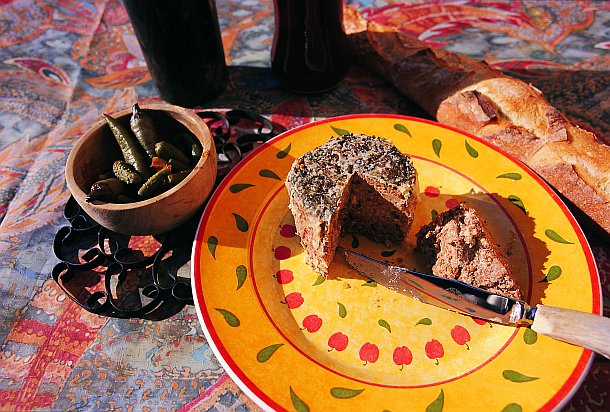 Tapisser une terrine de crépine avant de la remplir, en tassant la préparation.